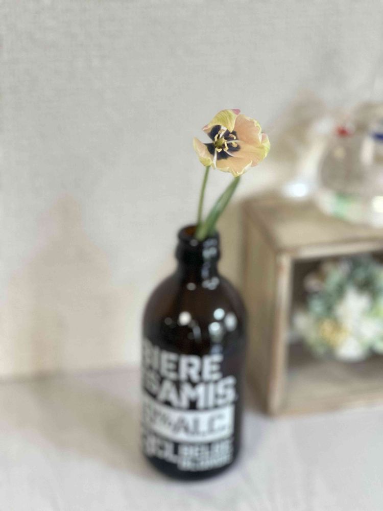 すぐにお気に入りのビール瓶に入れてあげたけど、はて...🙄ˀˀˀ
