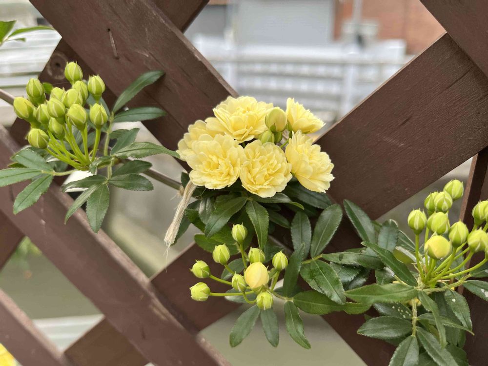 今年はラティスに横誘引して均等に蕾が付いて、開花が楽しみです🥰