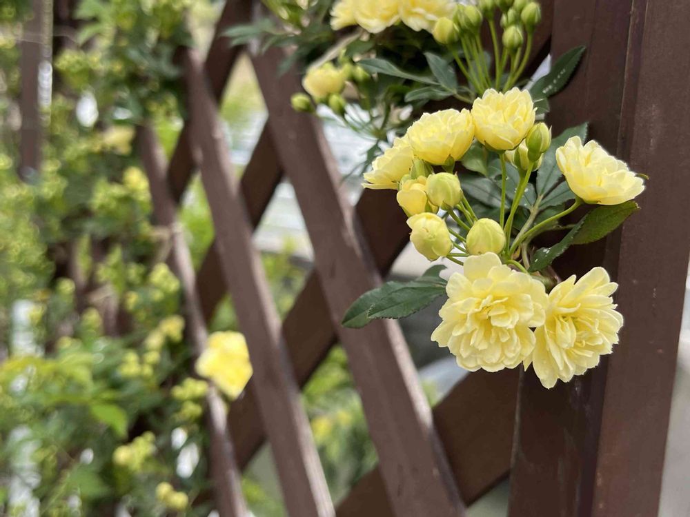もう咲いているのですね!モッコウバラは黄色で可愛いですよね😍トゲがないからいいですよね!バラ🌹みたく肥料やったり管理は難しくないんですか?