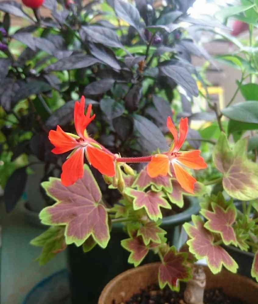 テラス,もみじ葉ゼラニウム,トウガラシ ブラックパールの投稿画像
