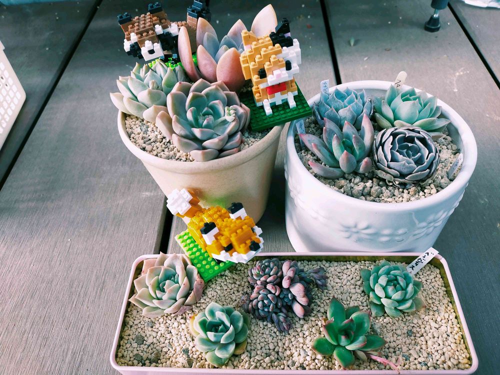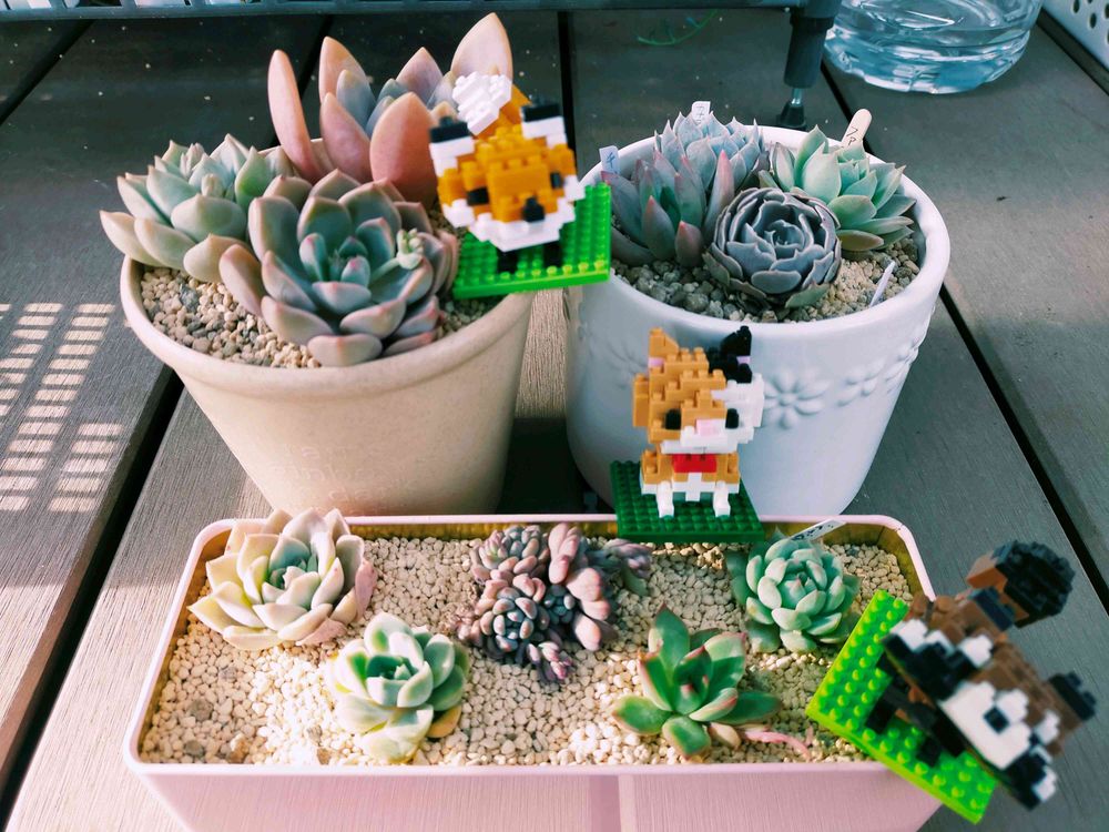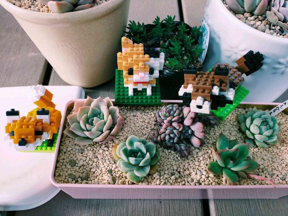 可愛い〜😍 多肉ちゃんたちもだけど、ブロックを組み立てて…っていうのが凄い‼️ やってみたいなぁ~って思うけど、にゃんズがいるから崩されたら…って思うと手が出せん…😅💦