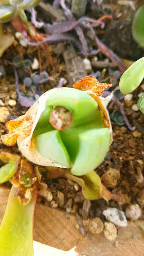 前にHCで買って寄せ植えの片隅に植えて忘れていたら、脱皮してました(笑)
