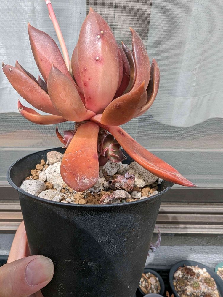 ⚫サボテン、アロエ、塊根など。 ⚫たまに「いいね」押してます。 --------------------------------------------------------- 【19.08】19年8月頃から徐々に多肉植物・サボテンの魅力に取り憑かれてしまいました。 【19.10.22】グリーンスナップを始めました。 【21年~22年】冬越しをほぼ室内避難しないチャレンジ。 【我が家の多肉植物・サボテン・観葉植物】220506時点 662/878 【セダム】3/6 ×春萌(19/11/3) ×プロリフェラ(20/2/1) ×薄化粧(20/2/5) ・※虹の玉(20/2/6) ・※虹の玉?乙女心?(20/2/6) 6・※黄麗(月の王子)(20/3/5) 【チレコドン】2/5 ×ブッコルジアヌス(19/11/3) ×スカエフェリアヌス 群卵(20/3/4) ×万物想(レティキュラーツス)(20/9/4) ・万物想(レティキュラーツス)②(20/10/2) 5・ワリチー(20/10/8) 【クラッスラ】10/17 ・天狗の舞(19/11/3) ・紅稚児(19/11/3) ×姫花月(19/11/3) ・テトラゴナ(19/11/12) ・火祭り光(19/12/4) ×花月錦白斑(19/12/4) ×※花月(金のなる木)(19/12/12) ・神刀錦(20/1/8) ×キムナッキー(20/1/10) ×10・※メセンブリアンセモイデス(ラージフォーム)(20/1/23) ×※花月?黄金花月?⇒火祭り錦?(20/1/23) ・巴(20/2/27) ・※火祭り(20/3/5) ・ゴーラム(20/12/16) ・神刀(20/12/24) ×アイボリーパゴタ(20/12/24) 17・spトランスバール ドラケンスバーグ(20/12/24) 【カランコエ】1/19 ・錦蝶(19/10/19) ×不死鳥錦(19/10/24) ×カーニバル(19/12/4) ×※月兎耳?(19/12/26) ×唐印(19/12/28) ×テディベア(20/1/10) ×ファング(20/1/11) ×ミロッティー(20/1/23) ×※黒兎耳?月兎耳?(20/2/6) ×10・※胡蝶の舞(20/2/6) ×星兎耳(20/2/12) ×ゴールデンバニー(20/2/12) ×福兎耳(20/2/12) ×姫黒兎耳(20/2/19) ×※シナモン?孫悟空?(20/2/19) ×キューエンス(20/2/19) ×※月兎耳(20/2/20) ×黒兎(20/2/20) 19×シナモン(20/2/21) 【センペルビウム】13/17 ×巻絹(19/9/6) ・パシフィックナイト(19/9/14) ・※百恵(19/12/12) ×※高嶺の華(19/12/12) ・※綾桜(19/12/12) ・※ファイヤーバード?パルグラム?(19/12/12) ・※レッドチーフ?ウラヌス?(19/12/12) ・※シャンハイローズ?(20/2/4) ・※神風?(20/2/4) ×10・※綾桜?(20/2/4) ・※麗人盃?(20/2/4) ・※雪牡丹?(20/2/4) ×※紅牡丹?(20/2/4) ・※ラウンドシーン?(20/2/4) ・※巻絹?(20/2/6) ・レッドベル(20/2/19) 17・※ご近所さん(20/5/17) 【ガステリア】39/43 ・春鶯囀バテシアーナ(19/11/20) ・グロメラータ(19/11/20) ・臥牛(19/11/20) ・リリプターナ(子亀姫)(19/11/20) ・白星竜(ベルコサ)(19/11/20) ・錦沙戸宝(19/11/20) ・ニティダ(19/11/22) ・フロッキー(19/11/22) ・姫子宝錦(19/11/24) 10・虎鉾(19/11/24) ・富士子宝錦(19/11/26) ・照姫(19/11/27) ・恐竜×大桑臥牛(19/11/29) ・颯々の松(19/11/29) ・ドラゴンスキン(19/12/2) ・名前不明⇒グリーンワイパー(19/12/4) ・黒鶯囀(19/12/4) ×臥牛錦 糊斑(19/12/4) ・白臥峰ダルマタイプ(19/12/4) 20・バイリシアナ×グロメラータ(19/12/10) ・ピランシー錦※斑多め(19/12/24) ・ピランシー錦※斑少なめ(19/12/24) ・臥牛竜(19/12/24) ・グラキリス(虎の巻)(19/12/25) ・ホワイトパール(20/1/7) ・白銀水牛(20/1/7) ・エクセルサ(20/1/8) ・ダルメシアン(20/1/10) ・タワー(20/1/23) 30・クロチェリー(20/1/23) ×ニグリカンス f.dark monstrosa(20/2/27) ・金剛殿(20/2/27) ×ラウリンソニー(20/3/13) ・幅広ピランシー(20/4/7) ・恐竜×白点臥牛(20/4/7) ・恐竜(20/11/9) ・ラウリンソニー②(20/11/19) ・恐竜②(21/1/12) ・恐竜×春鶯轉(21/1/13) 40・ホワイトパール②(21/1/13) ×ラウリンソニー③(21/2/10) ・エレフィアエ(21/4/13) 43・臥牛②(21/6/14) 【ディッキア】49/52 ・ハイブリッド(19/11/6) ・(アリソナ×マルニエルラポストレイ)×ボーン(20/2/21) ・アリゾナ(20/3/13) ・ニッケルシルバー(20/3/13) ・縞剣山錦(20/3/18) ・(ケリー×マセドイ)×ヘブディング ビッグブルーF1(20/3/24) ・ターザン(20/7/15) ・ゴエリンギー(20/7/15) ・エステベシー(20/7/16) ・グランマルニエル スノウ(20/8/21) ・ダウソニー(20/9/9) ・コリスタミネア パープルフォーム(20/9/16) ・マイケルアンドレス(ブリットルスターF3)(20/9/16) ・ゴエリンギー レッドクローン×ターザン(20/9/18) ・ターザナ(20/9/18) ・レッドボーン×スカイウォーカー(20/10/27) ・グランマルニエル(20/11/4) ・トゥーシ―F2(シルバークローン)(20/11/4) ・グレイオプス(20/11/5) 20・タイニーレッド×ヘブンアンドヘル(20/11/5) ・マルニエルラポストレイ エステベシー シーディング ブラジル(20/11/5) ・(レッドシャーク×ディストーション)×ジョーズ(20/11/5) ・ブラックアイス(20/11/6) ×ダウソニー×ガーネットクロウ(20/11/12) ・デリカータ(20/11/18) ・エステベシー×ゴエリンギ―(20/11/30) ・ゴエリンギーOPS セレクト ホワイト(20/11/30) ・(ソウフィッシュ×7a)×ターザン(20/11/30) ・ベアテアエ レッドクローン(20/12/07) 30・アリゾナ×HU-5(20/12/08) ・エステベシー②(20/12/08) ・ダコタ(20/12/09) ・マルニエルラポストレイ(20/12/10) ・エステベシー×ブリットルスターF2(21/1/8) ・マウンテンオブニードルズ(21/1/14) ・エステベシー③(21/1/27) ・パラファット(21/2/10) ・ジョーズ×ドナマリエ(21/3/15) ×フォステリア×エステベシー(21/3/15) ×40・フォステリア×エステベシー②(21/3/15) ・カタナ(21/3/24) ・スノーストーム×ブライヤーパッチ(21/3/24) ・ワサビ(21/4/7) ・ブラックアイス②(21/4/12) ・ブラ