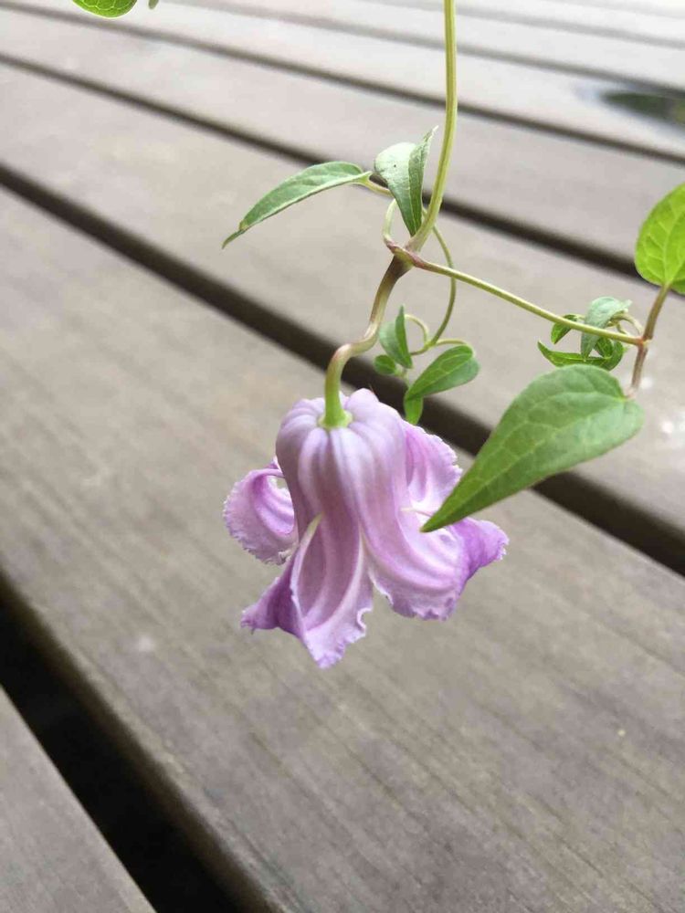 先日、お買い得になっていたので買ってきたクレマチス クリスパエンジェルの花先がくるりとしてきました。