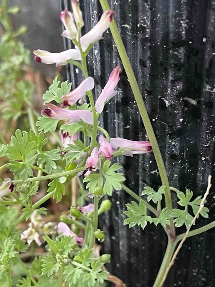 「ムラサキケマン」かと最初思いましたが、大きさが小さめで、よく見たら横にたくさんつくしと一緒に咲いていました。調べるたびにいろいろ名前が出てきます。もうわからなくなって