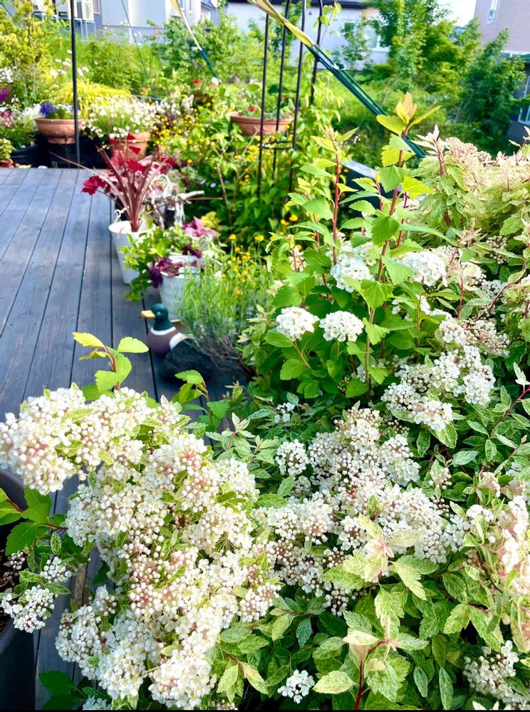 わぁ⸜(*ˊᗜˋ*)⸝コデマリさん綺麗🤍ウッドデッキに映えますね✨