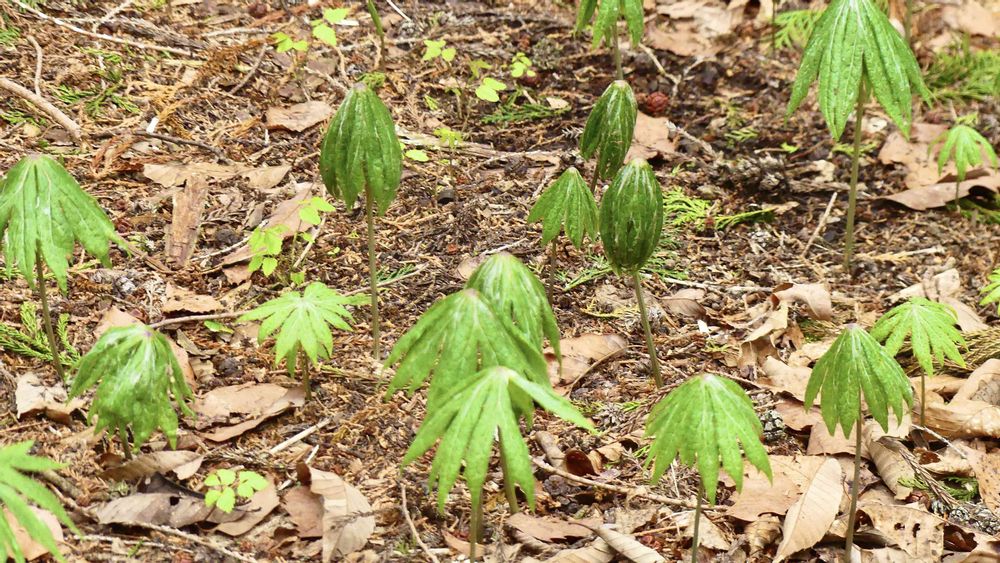 ヤブレガサの新芽も出てました、山菜ですね。本当に破傘あるいは傘のお化け👻ですよねえ😆