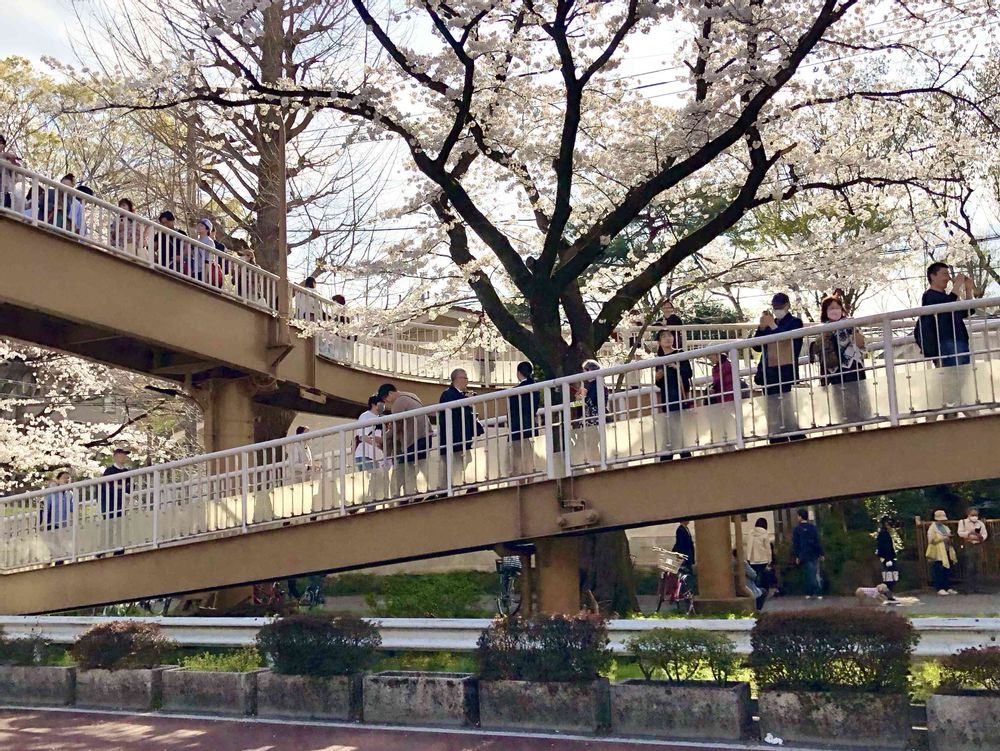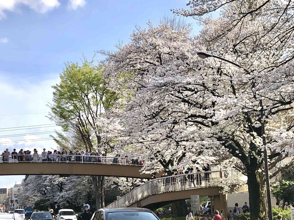先ほどワイドショーで昨日の様子をやっていましたよ。歩道橋から撮る桜のトンネルが人気なんですね😍
