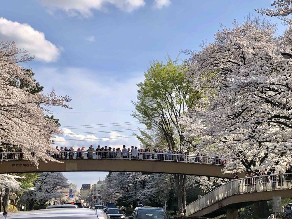 ワァオ、これが有名な一橋大学通りの桜風景なんですね✨🌸🌸🎉🌸🌸👌✨
