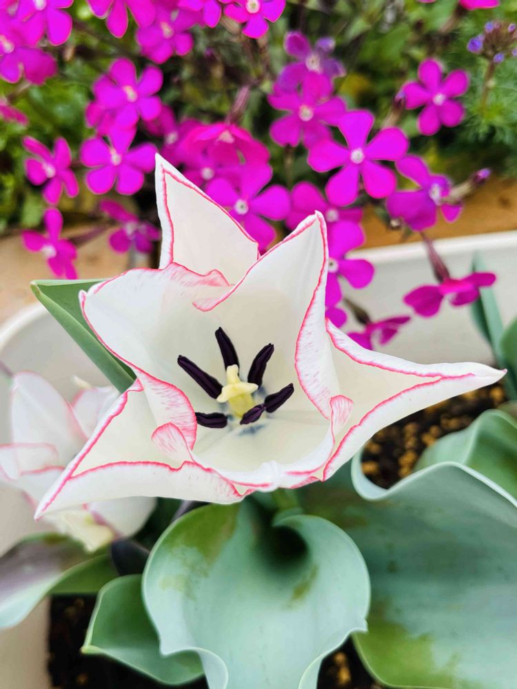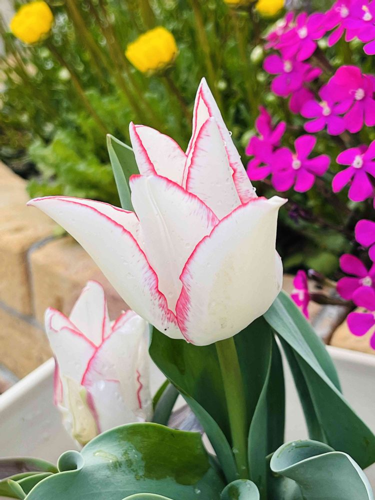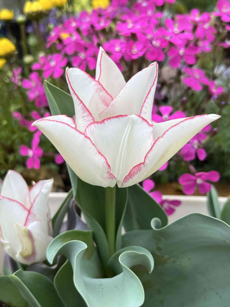 白いチューリップ、赤い縁取りが素敵ですね🌷