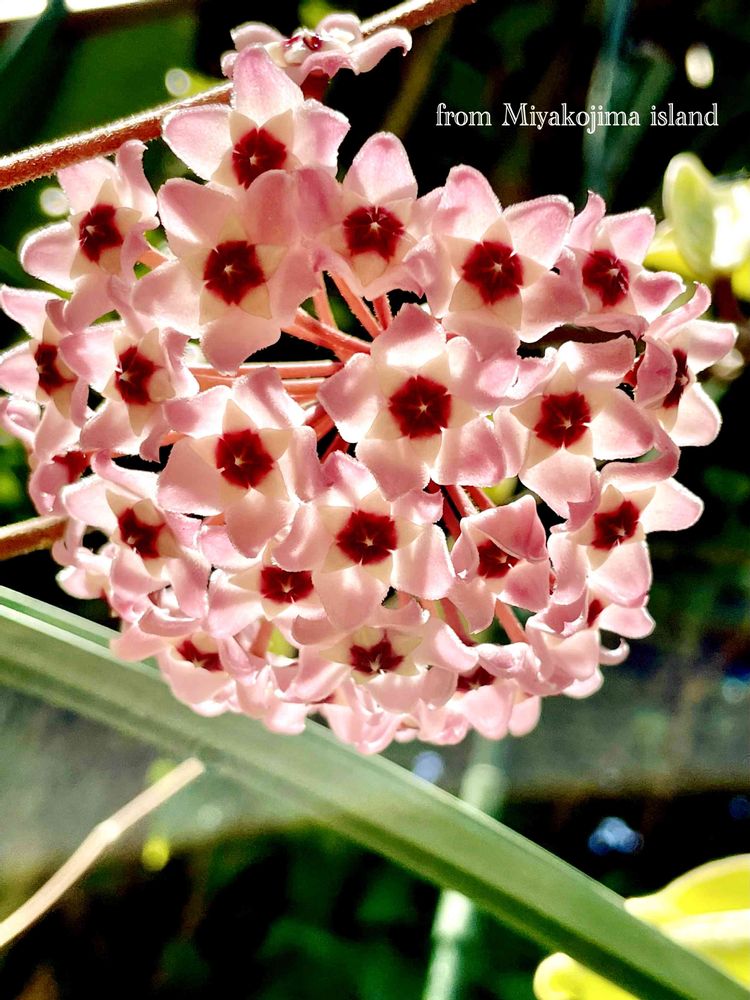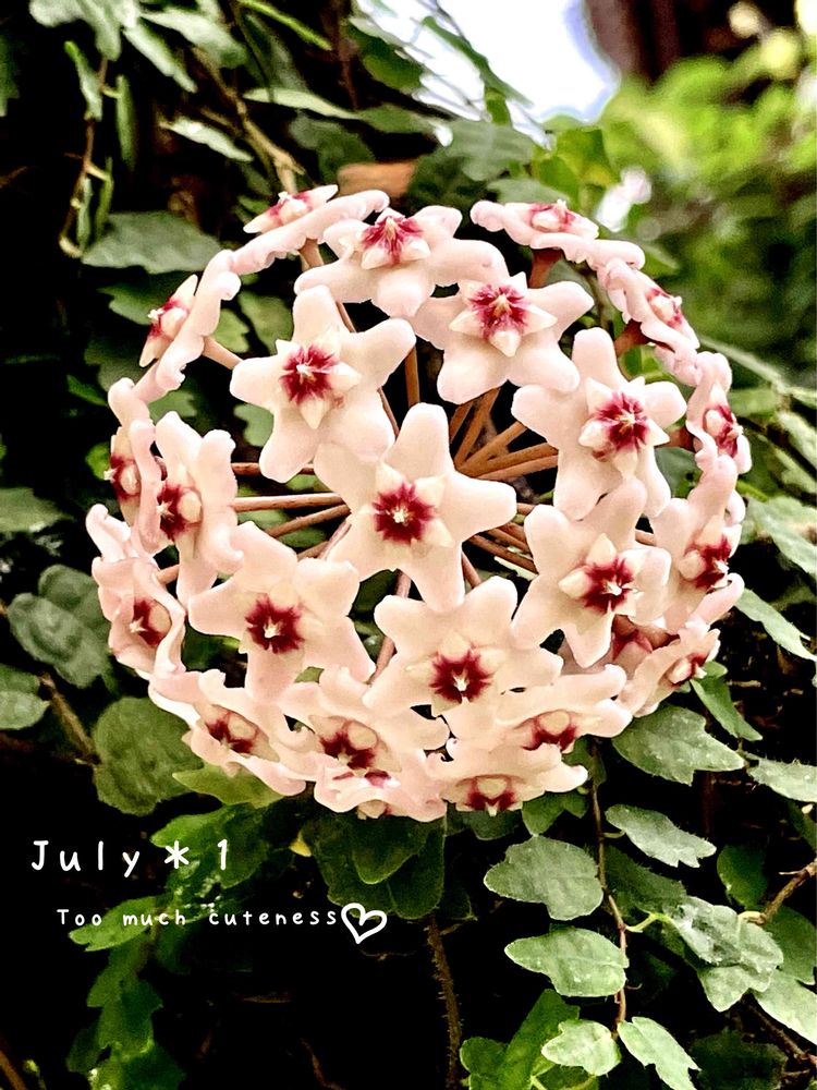 今日のお花、ホヤ・カルノーサ、通称サクララン🌸まさにサクラのお花がまーるい形になって咲いているみたいです🥰