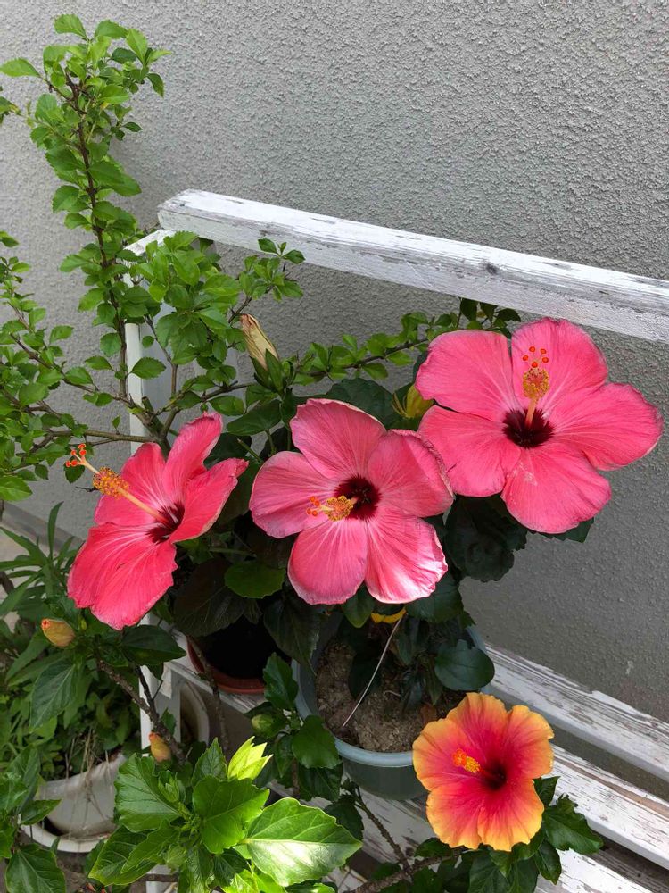 暑い夏に、元気くれるハイビスカス🌺🌺🌺。