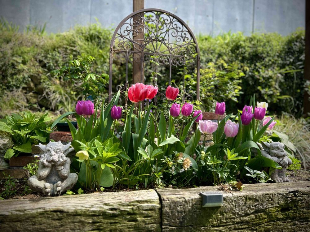 ①パーゴラの下のチューリップ🌷