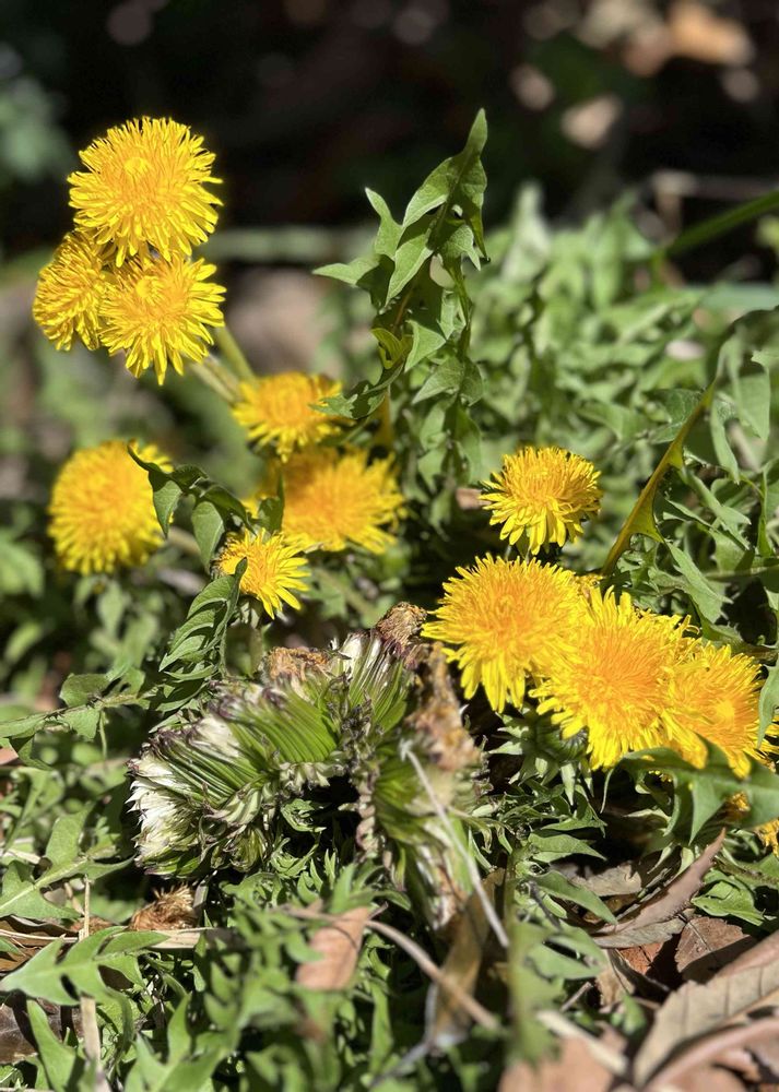 手前のモシャッとしているのが帯化タンポポの綿毛になりかけの部分