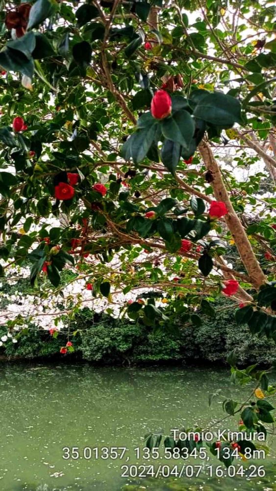 ヤブツバキが咲き、柳の新芽、ソメイヨシノが満開です。