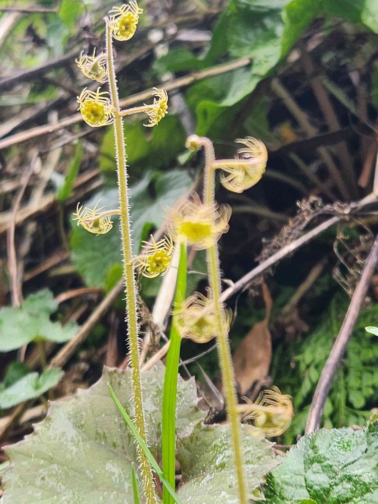家の前の下の川までのノリ面に葉ワサビやフキなどがごっちゃに生えている所で♡♡♡