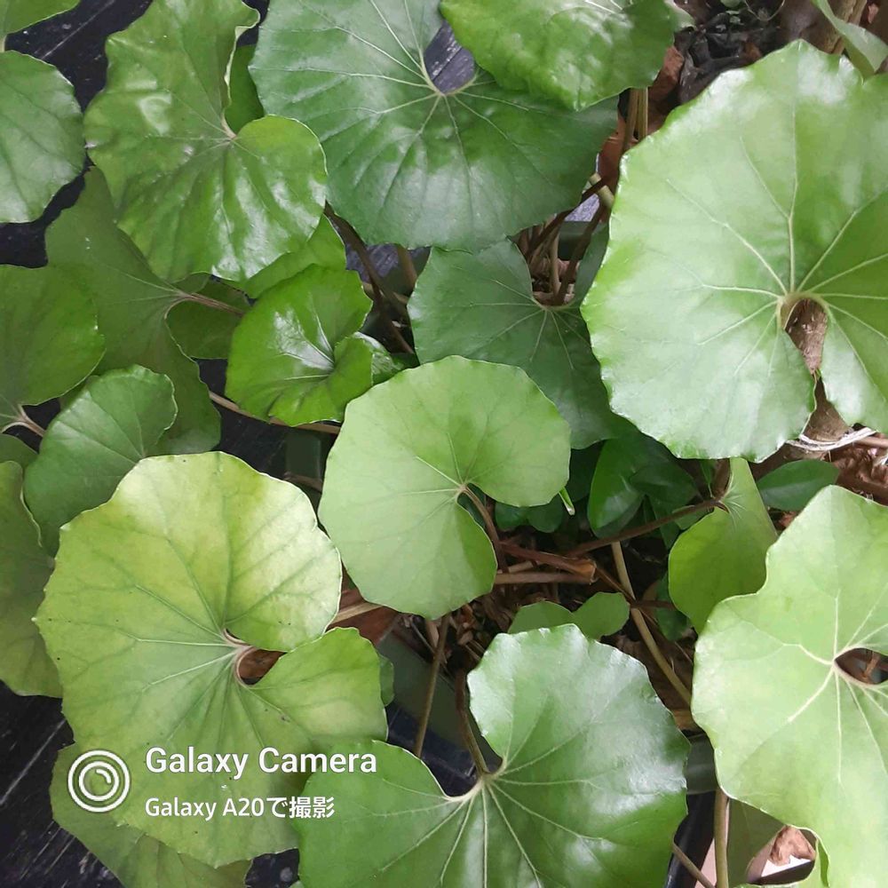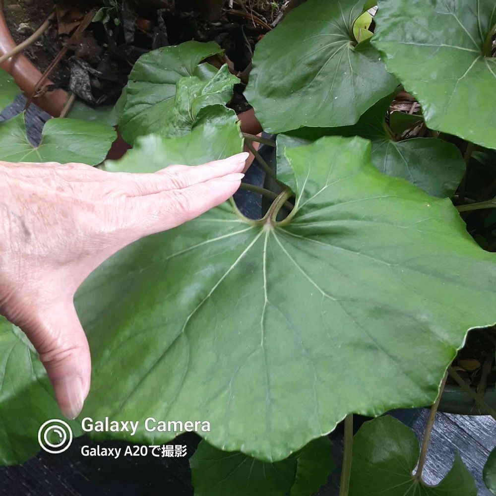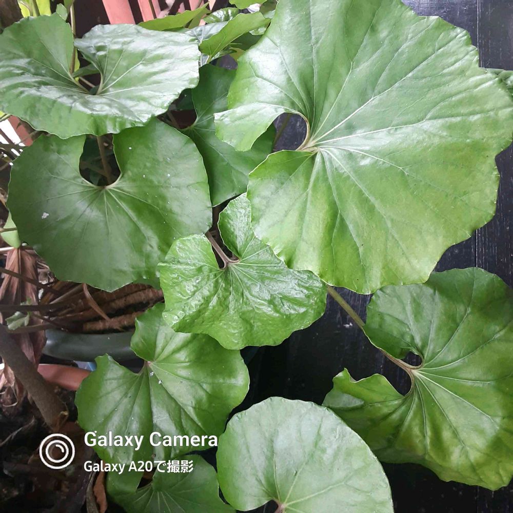ウッドテラスに二鉢のツワブキの葉っぱ🌿