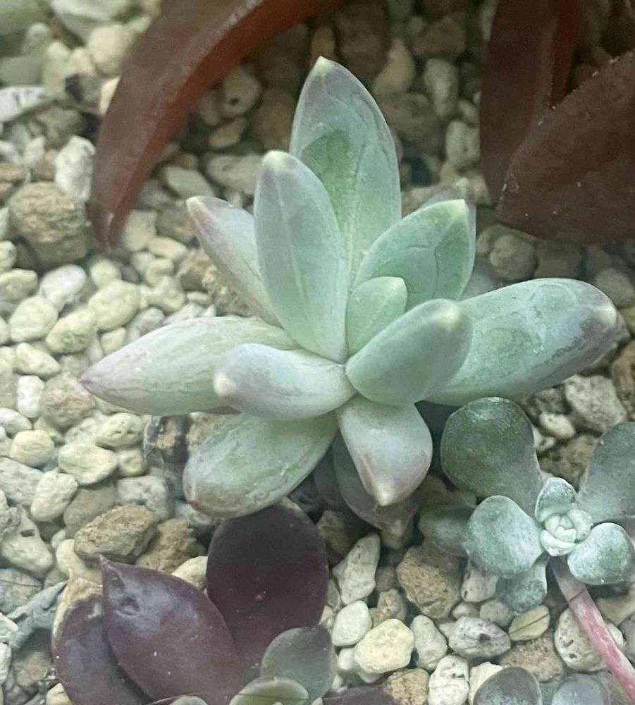 唯一、一枚だけ葉が残ったので、ダメ元で葉挿ししてみたら可愛く育ってくれました🌱