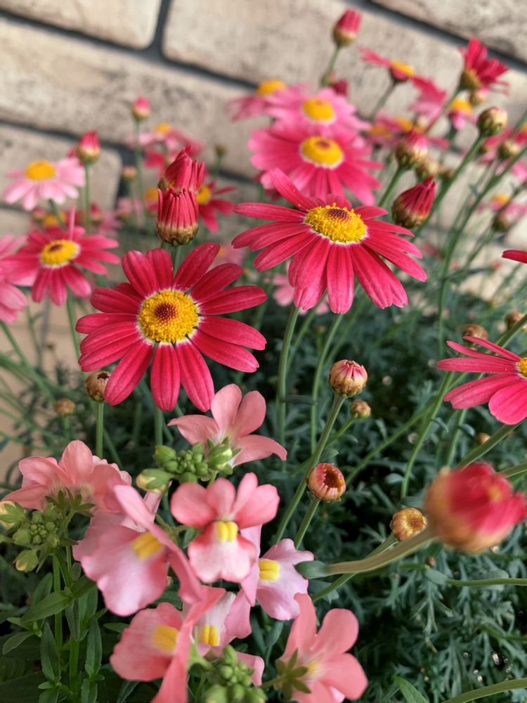 マーガレットとネメシアの寄せ植えです。ネメシアはマーガレットに押しやられながらも、頑張って咲いています!