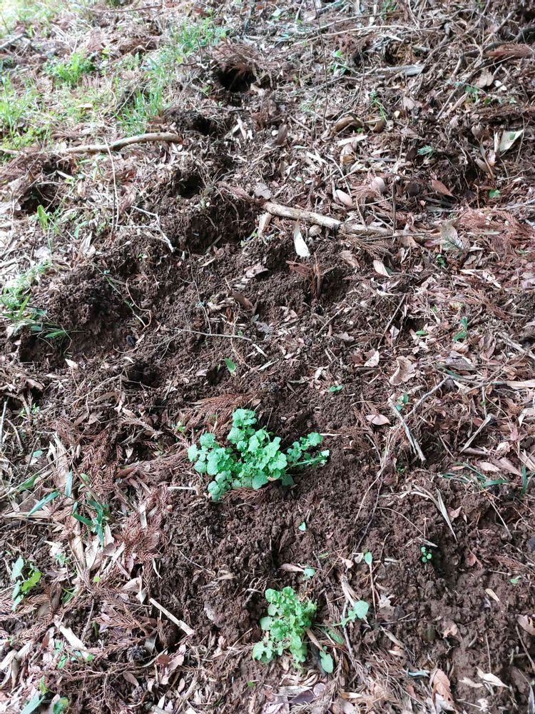 皮だけ残して、食い散らかし、地面はボコボコ穴だらけ💢困ったもんです(> <)