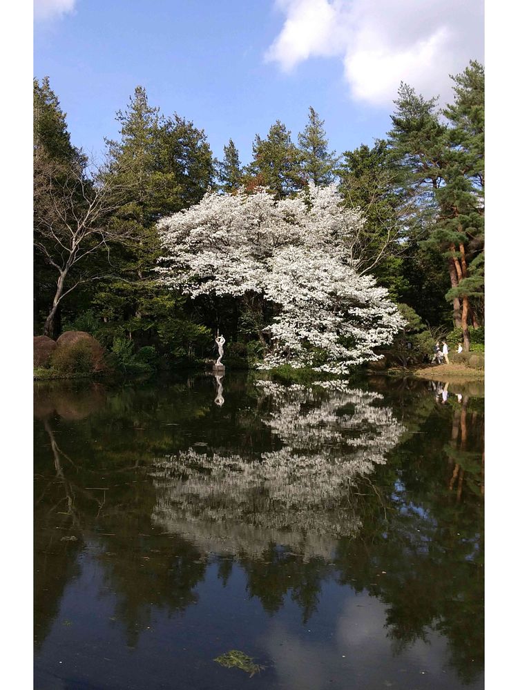 水鏡に映るオオシマザクラ、どっちが本当の世界?😍
