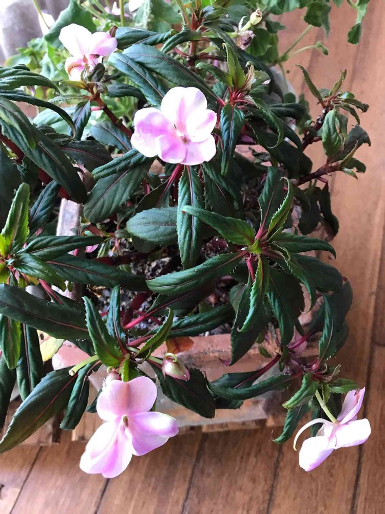 冬越しをした、ニューギニアインパチェンスの花が、咲き始めました。嬉しいです😃
