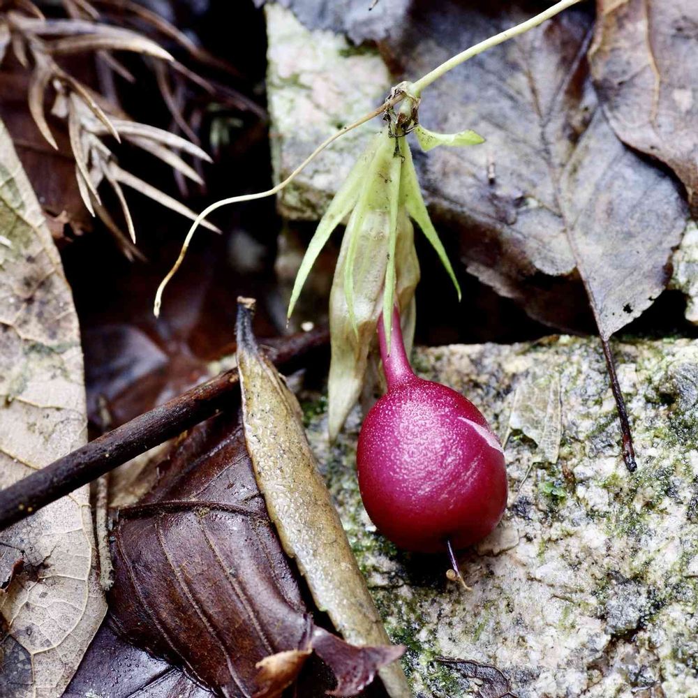 この谷で見た赤いものは、このツルリンドウの実とヤブコウジの実だけでした。😅