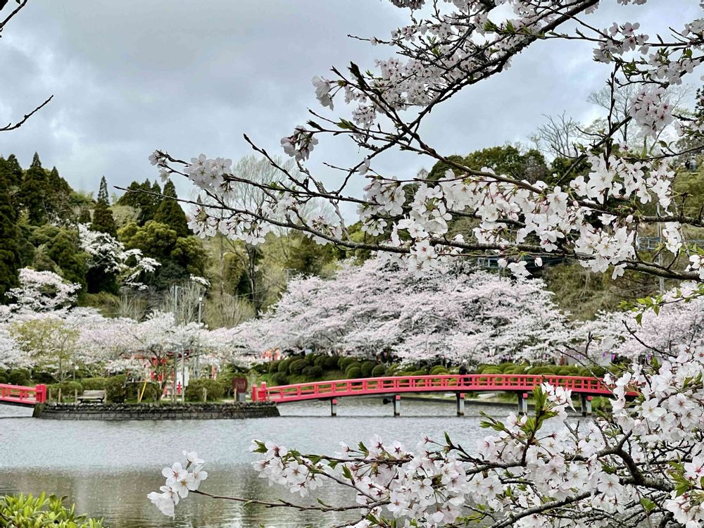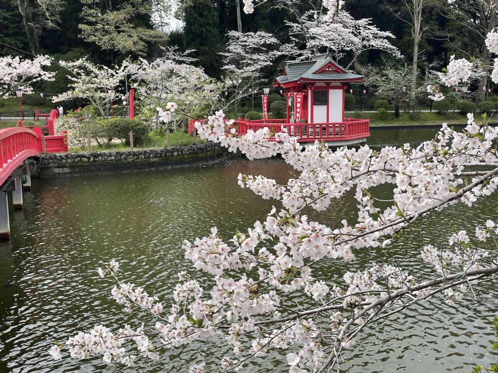 弁天湖の周りの桜は、今満開から花吹雪となりつつあります🌸