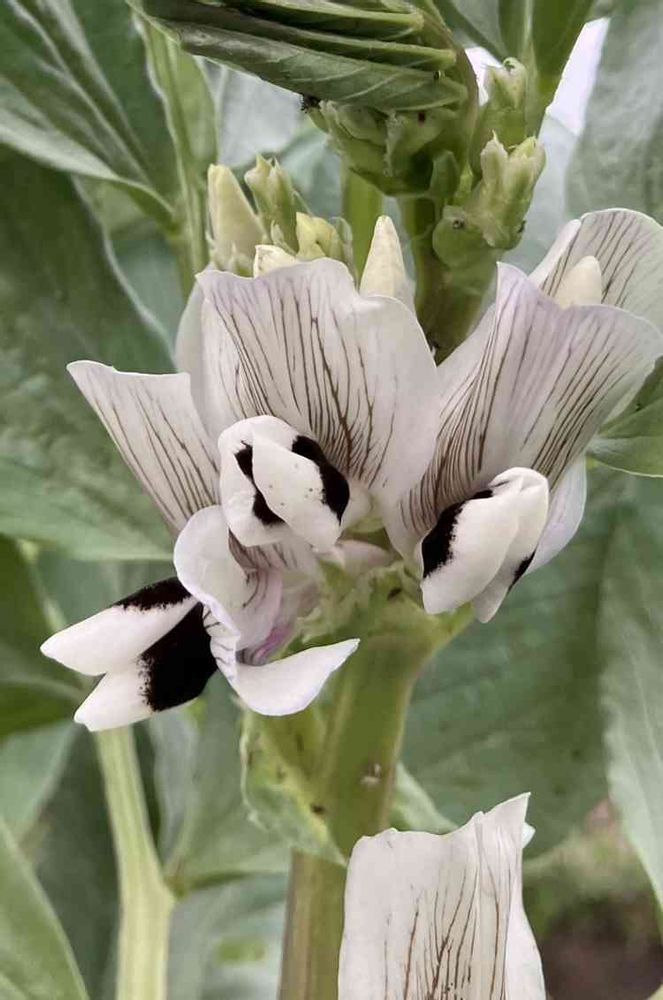 花が咲いてきたら、違う種類のそら豆が混ざっていました。