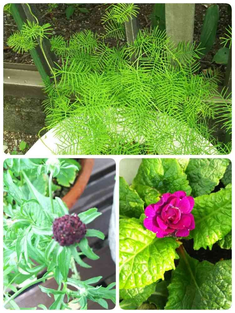 左下 かなり前に葉っぱばかり繁っていたベリー色のスカビオサ、やっと蕾が付きました!😍