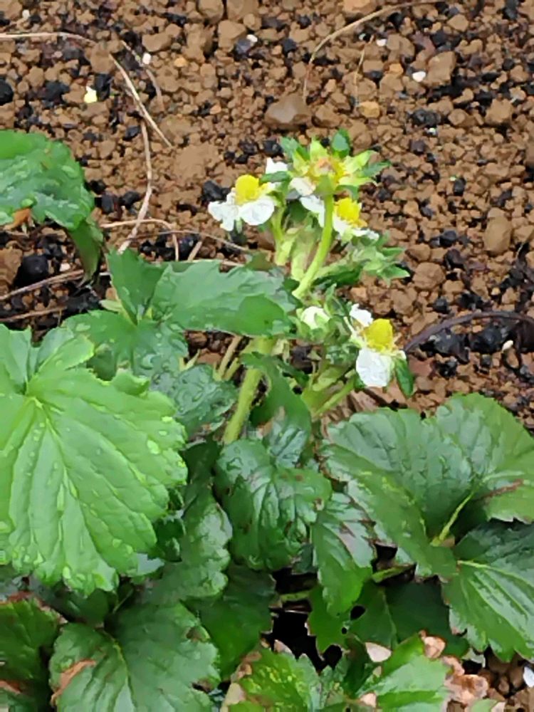 昨年 夫が植えたいちごが また 花が咲いてきました🍓