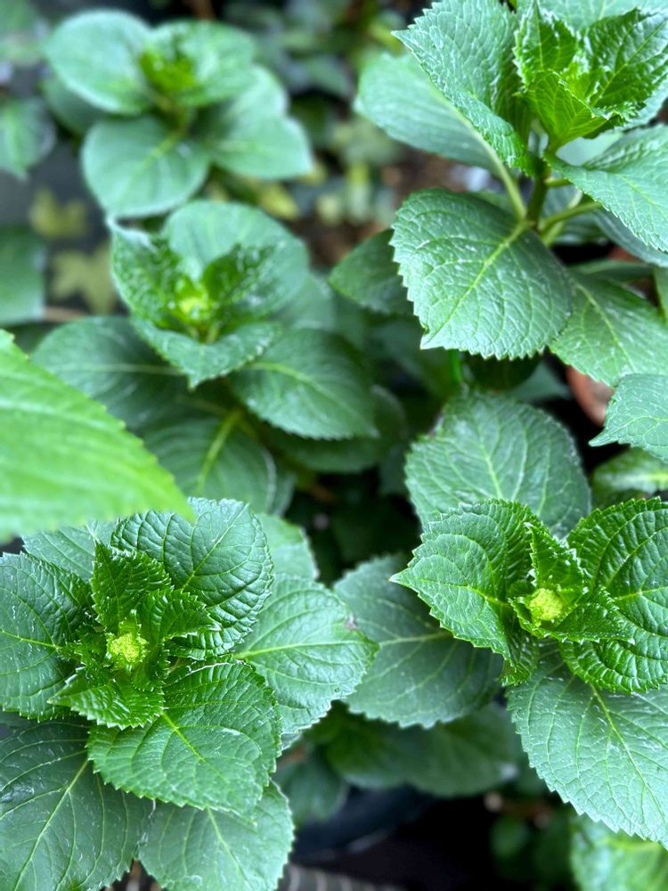 雨音を聴きながら 紫陽花の蕾の進捗状況を確認するという ✨至福の時間を過ごしています。🪴