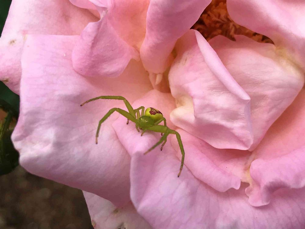 ハードな感じのクモpicかと思ったらアラカワイイ🎀ピンクのバラ背負って🌹。