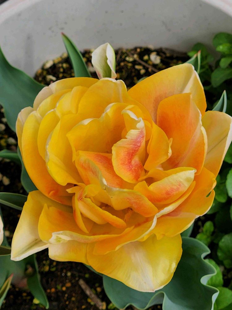 今日は強風🌬️🌬️と雨☔☔でチューリップ🌷🌷🌷さんたち大丈夫かと心配してたら、midorinさんの八重咲きチューリップ🌷さん、色が変わりましたねー💛💛💛 すご〜くステキなチューリップ🌷さんですねー🌷