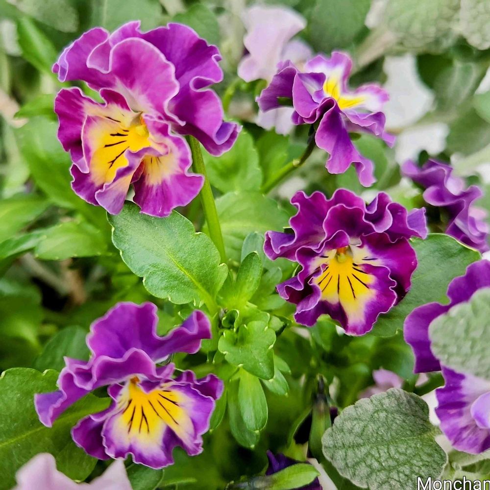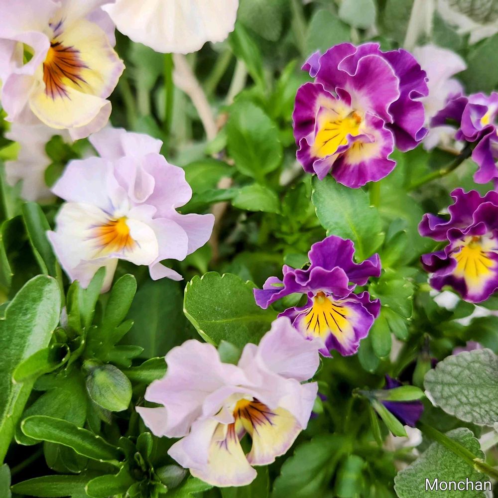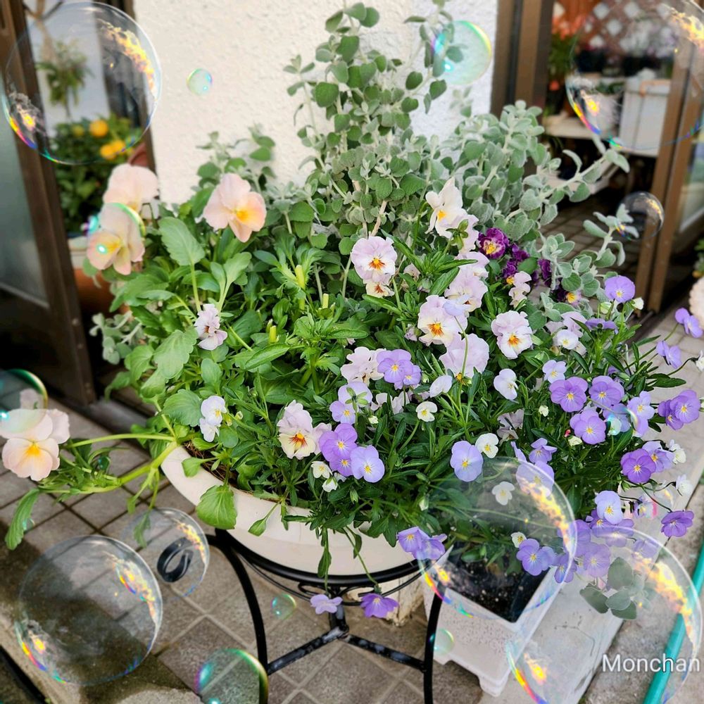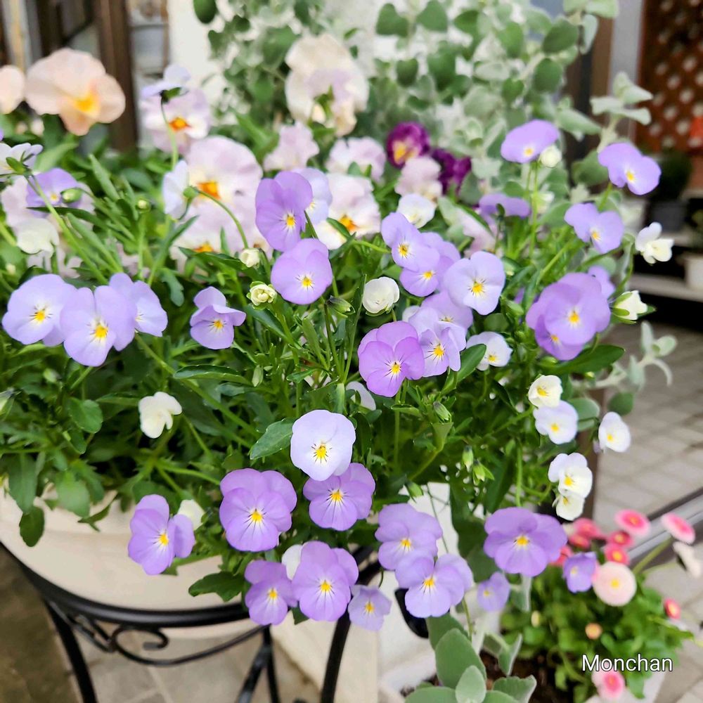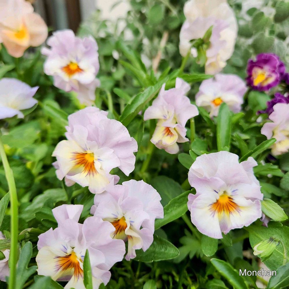③右奥:半月前までは、3輪のみ開花のフリンジビオラシャルロットも続々と咲いてきました🤗