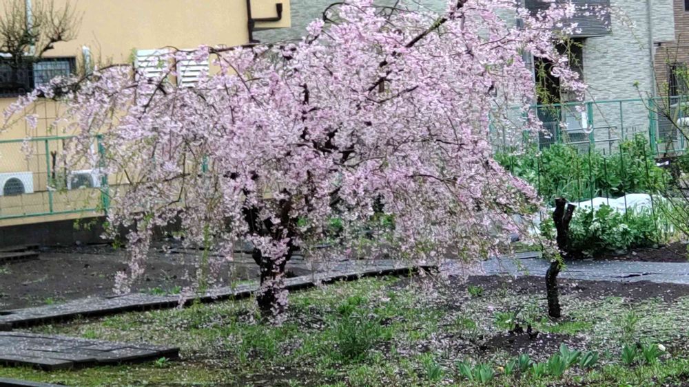 春の嵐にシダレザクラも散々な目に会っています。
