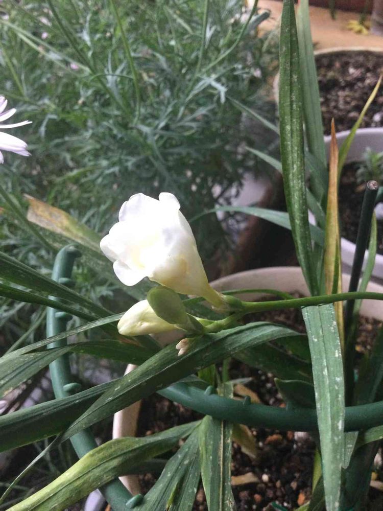 楽しみにしていたフリージアですが、この苗は白かったです。
