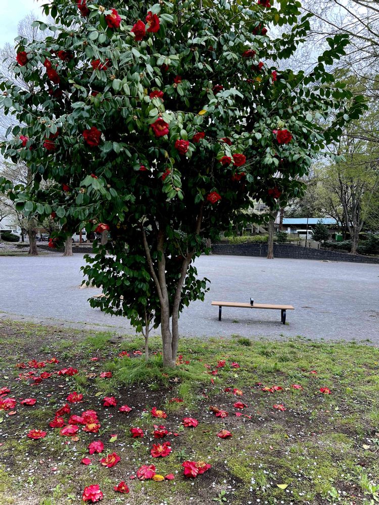 椿の公園で
