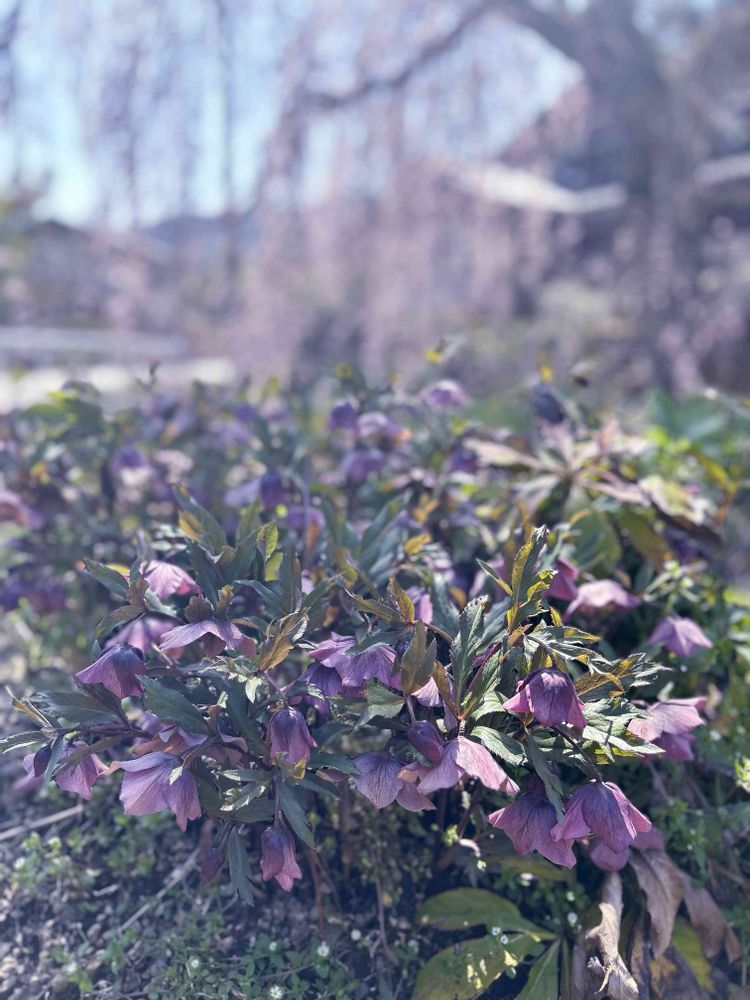 枝垂れ桜?と紫のクリスマスローズで、お祝いpicありがとうございます😍