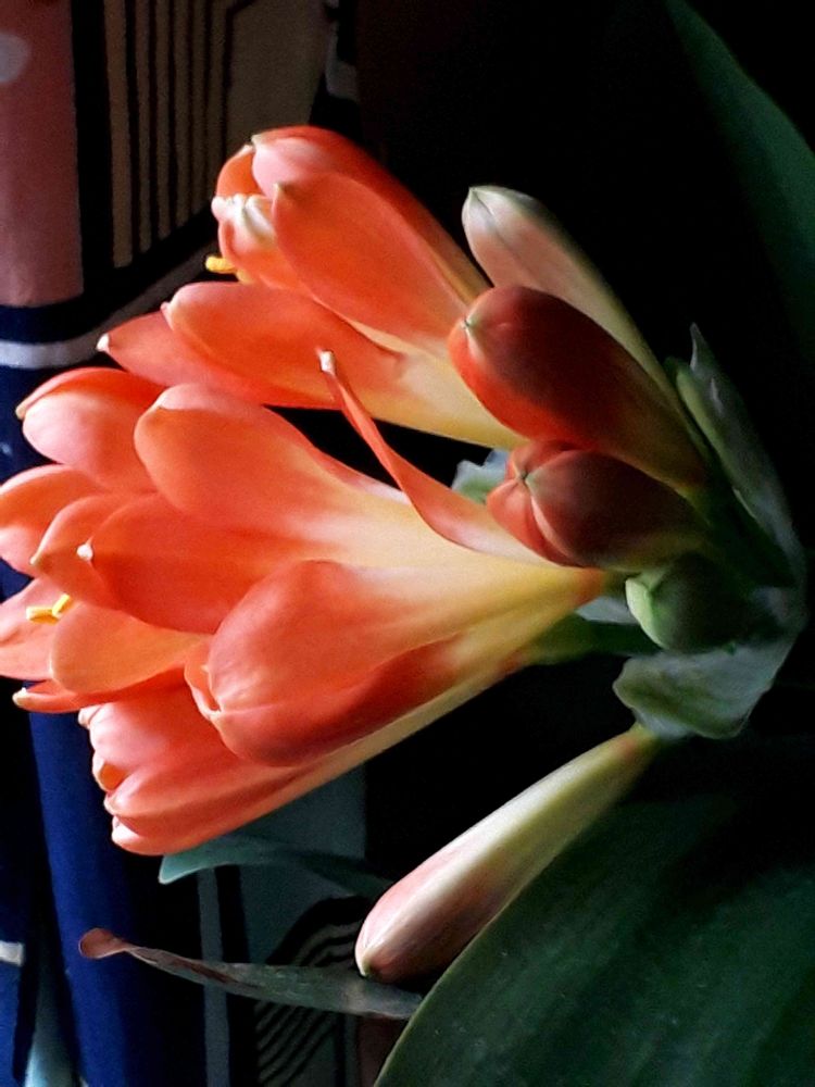 やっと君子蘭色付きましたよ💛🙌部屋に入れてたから間延びしてるんだけど咲いたわね🎵