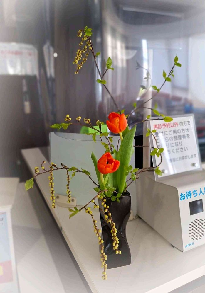 その日の花材や時間によって受付やお手洗い等7~9ヶ所に生けています💠