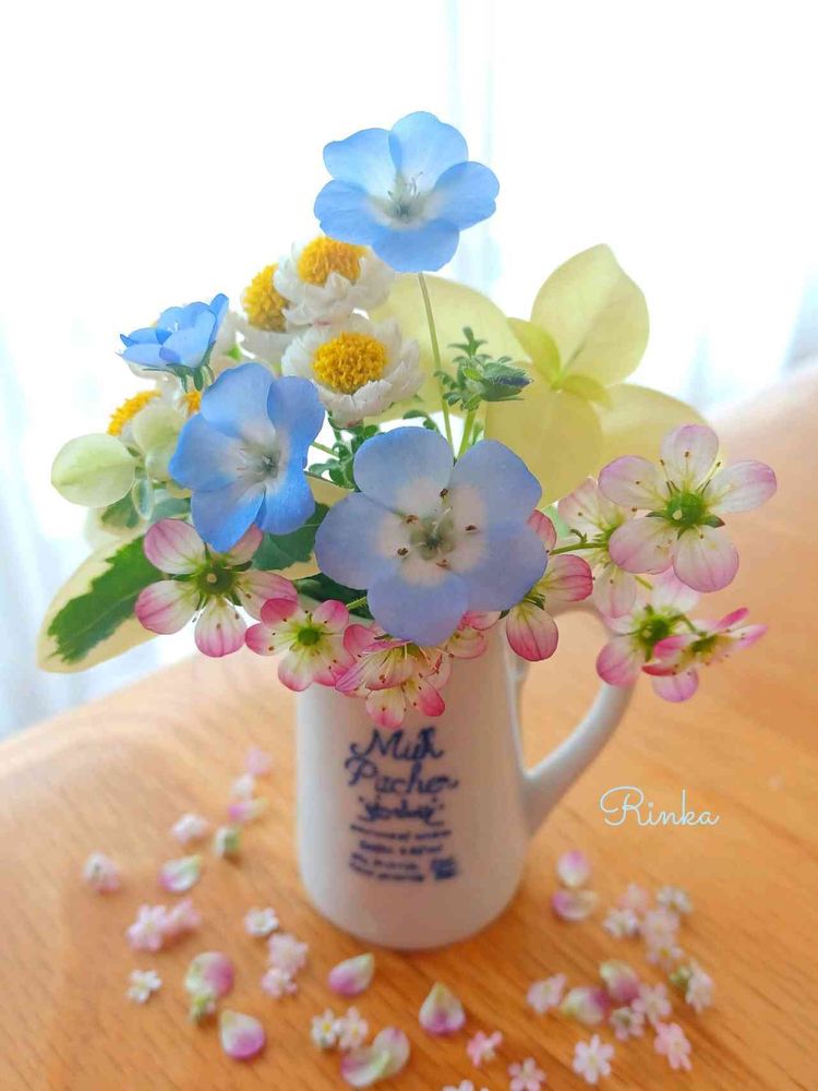 下に散らしたのは、忘れな草とくもま草の花びらです🌸💓🌸💓🌸