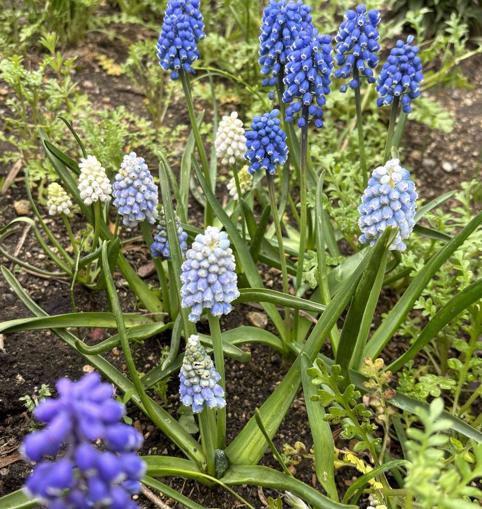ムスカリ白 淡いブルー ブルー 紫と咲きました🩵