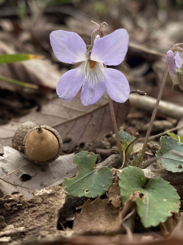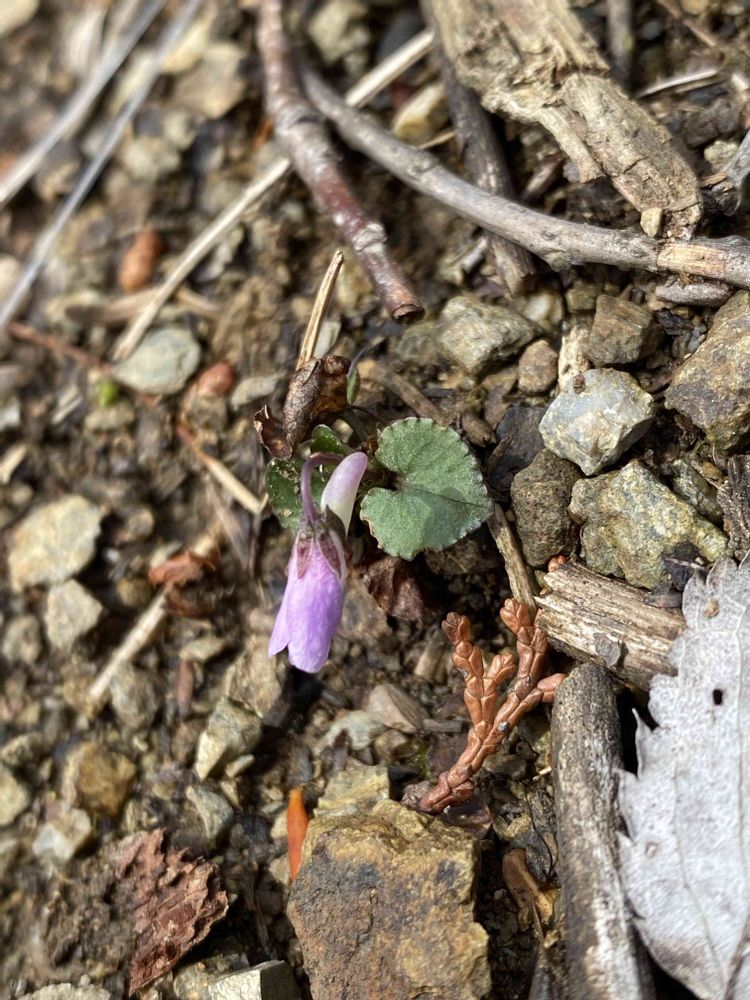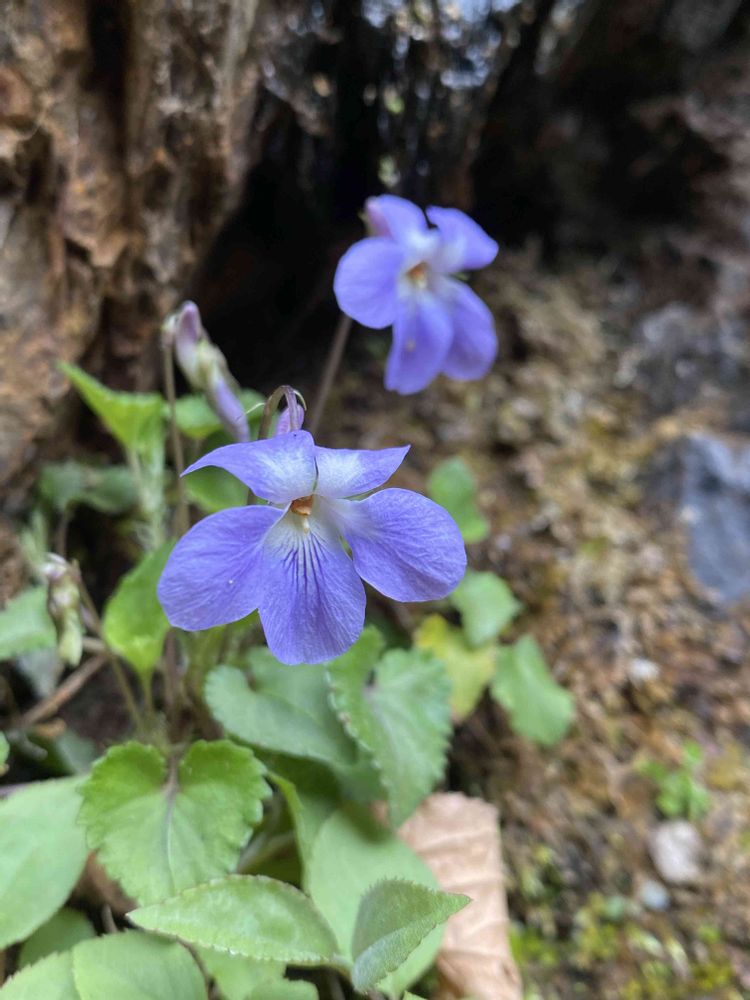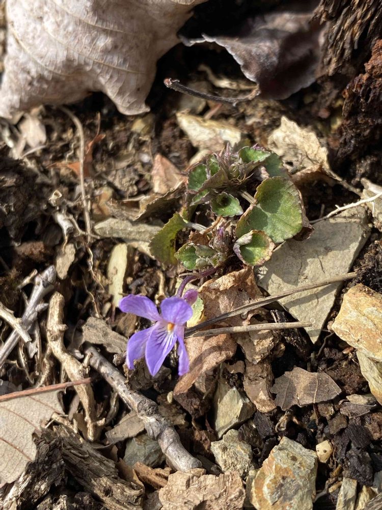 山中は季節のせいか土壌のせいか、おそらくは跋扈する鹿さんたちのせいで、下草というものが一切無くて、春らしい花はこのスミレ以外何もありませんでした〜