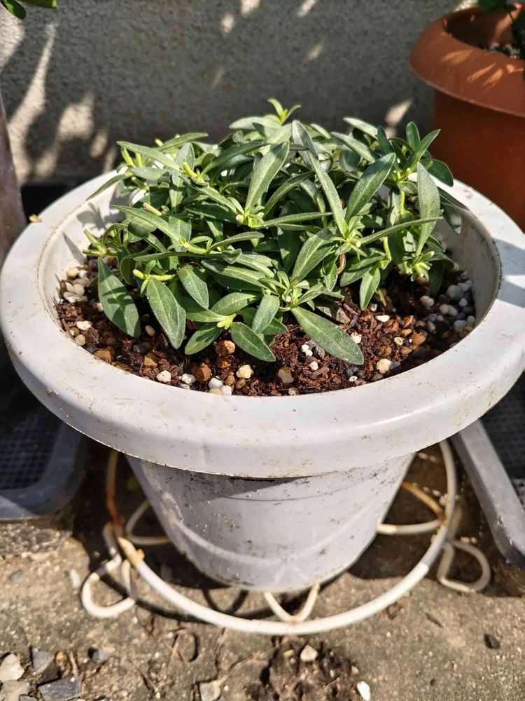 5号鉢に植え付けて✂️しました花の大きさはペチュニアより少しちっこい位です。色はネットをポチッて見たけどわかんなかった咲いたらアップしますね。