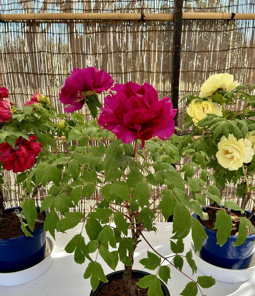 01月14日神代植物公園の寒牡丹展示。盛春の花をわざわざ真冬に咲かせるなんて古典園芸の技は残酷🥶