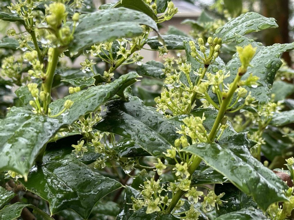 4.5枚目、チャイニーズホーリーは地植えで元気❣️