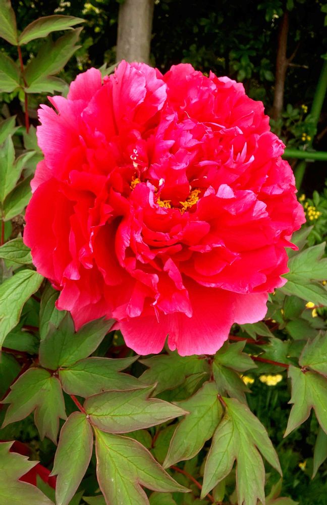 今日のお花 大きな赤いボタン(牡丹)が あでやかに咲いていました🪷