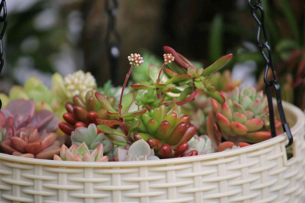 籠の寄せ植え彩り綺麗だね🥰