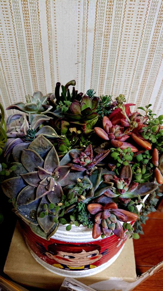 ③ペコちゃんのリメ缶の寄せ植えも‼️